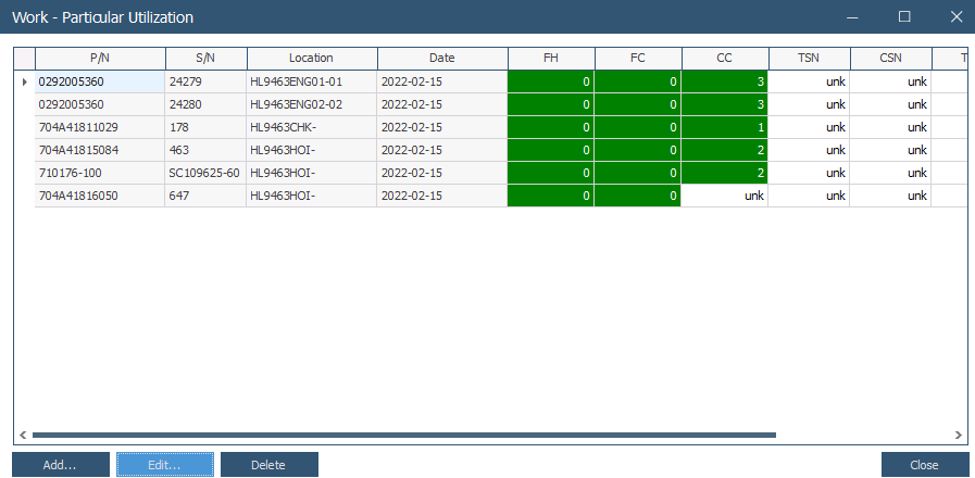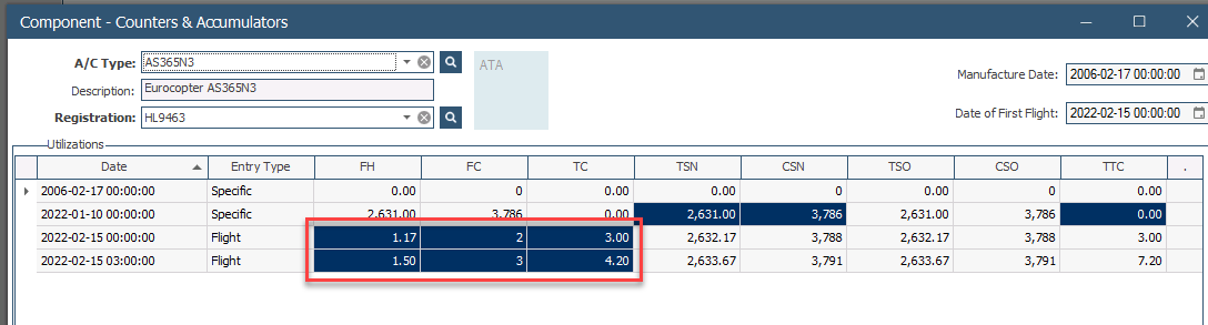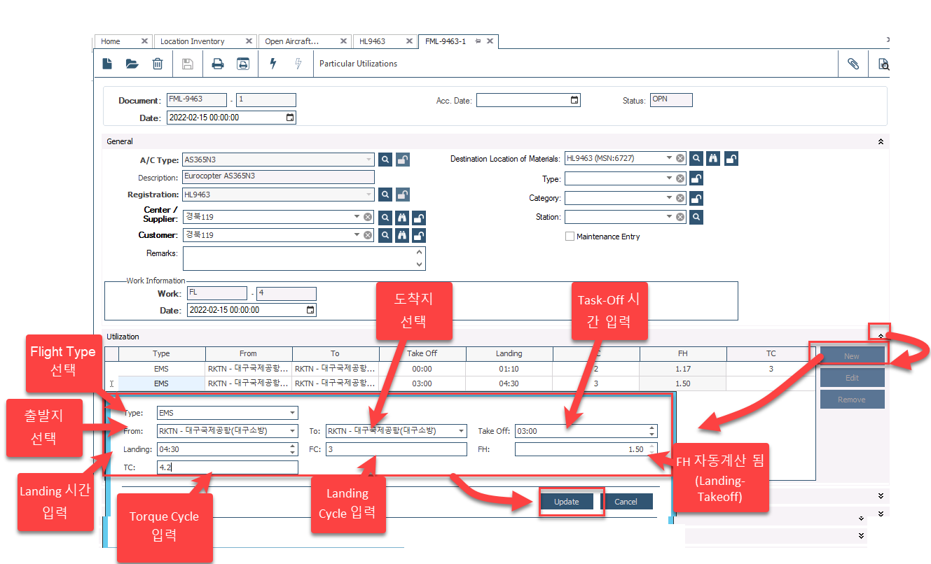 주로, 시스템에서 자동으로 실행되는 System Process에 의해서 CLOSING 된 FML의 UTILIZATION VALUE(FH, FC 등) 가 개별 항공기나 장착 부품에 저장됨. 하지만, 아래 이미지의 방법을 따를 경우, System Process가 자동으로 실행되기 전에도 직접 저장 가능하니 참고 바람