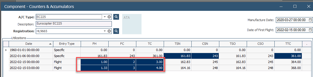 주로, 시스템에서 자동으로 실행되는 System Process에 의해서 CLOSING 된 FML의 UTILIZATION VALUE(FH, FC 등) 가 개별 항공기나 장착 부품에 저장됨. 하지만, 아래 이미지의 방법을 따를 경우, System Process가 자동으로 실행되기 전에도 직접 저장 가능하니 참고 바람