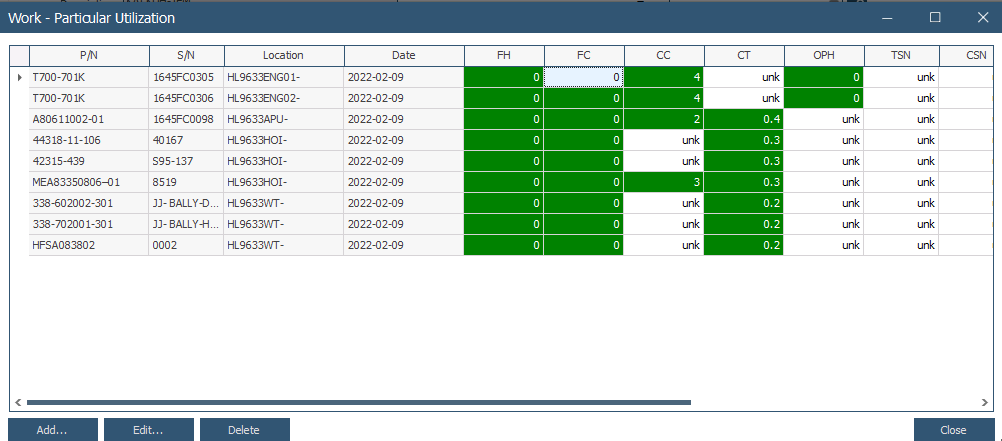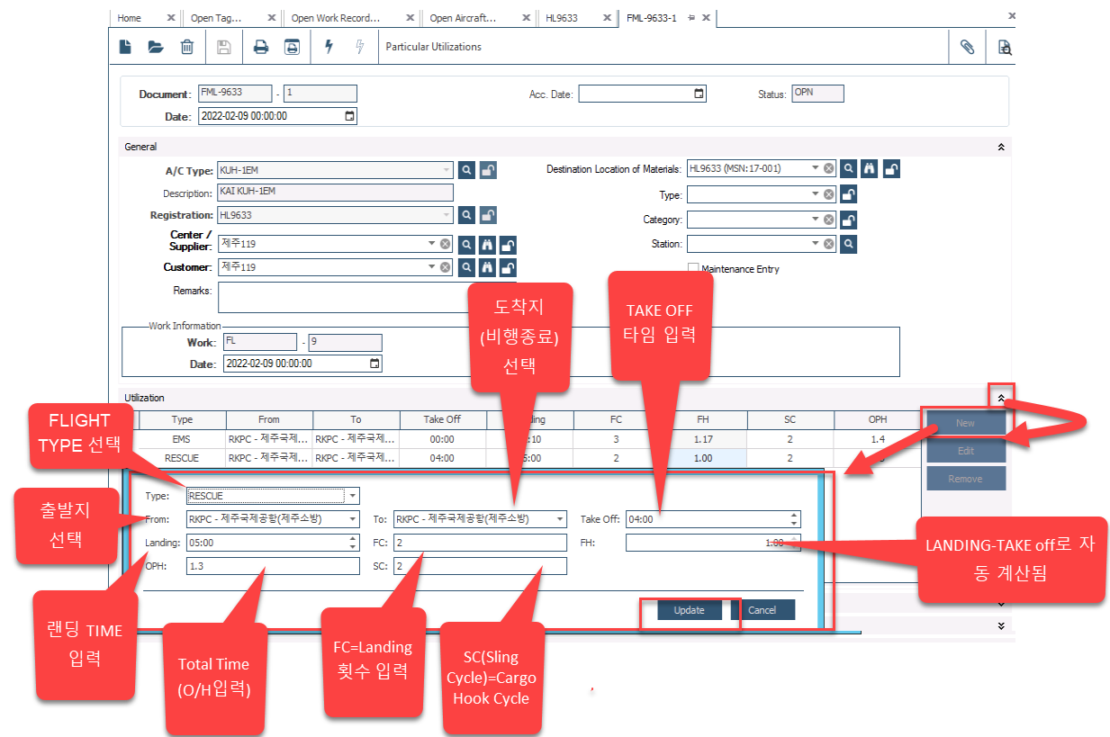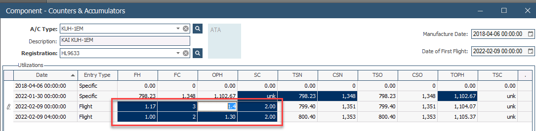 주로, 시스템에서 자동으로 실행되는 System Process에 의해서 CLOSING 된 FML의 UTILIZATION VALUE(FH, FC 등) 가 개별 항공기나 장착 부품에 저장됨. 하지만, 아래 이미지의 방법을 따를 경우, System Process가 자동으로 실행되기 전에도 직접 저장 가능하니 참고 바람