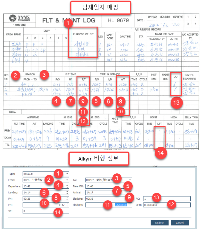 # 탑재일지 VS 시스템 FML 매핑 정보 (APU, Hoist 등의 시간 사이클 입력은 Step 5 참고)