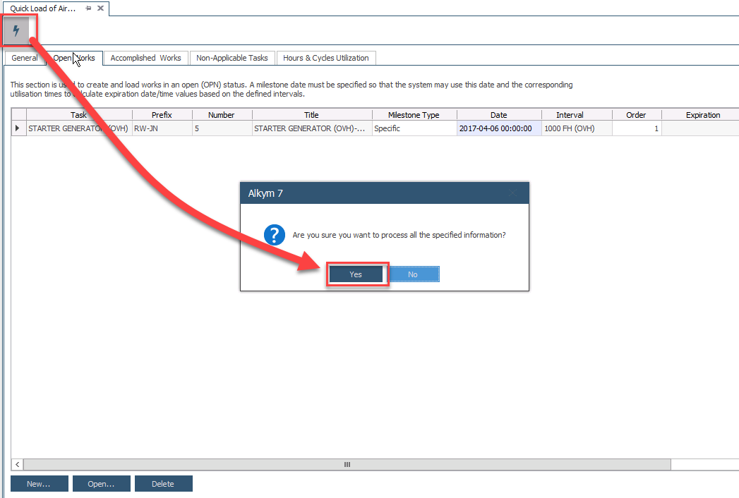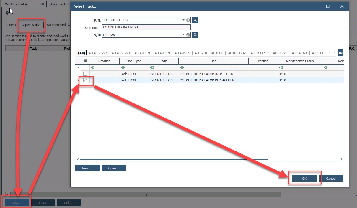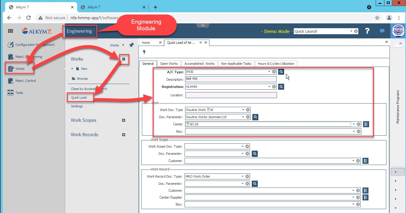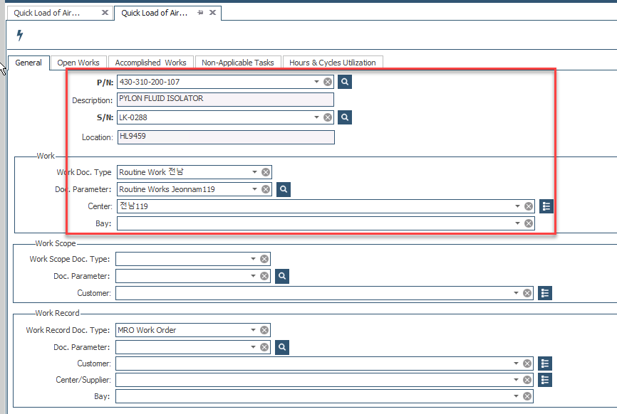 2. STEP2: QUICK LOAD TOOL 실행 → A/C & REGISTRATION 선택 → Work Doc Type 선택(항공대 별)