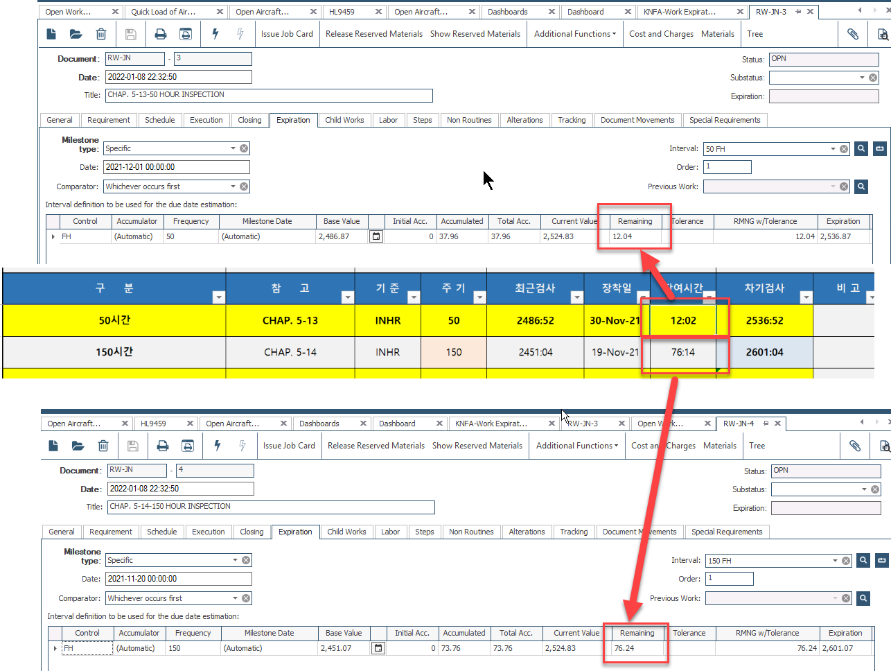 - Maintenance Program 에 포함되어 있는 System Task(Inspection, AD, SB, TRP, TBO 등)를