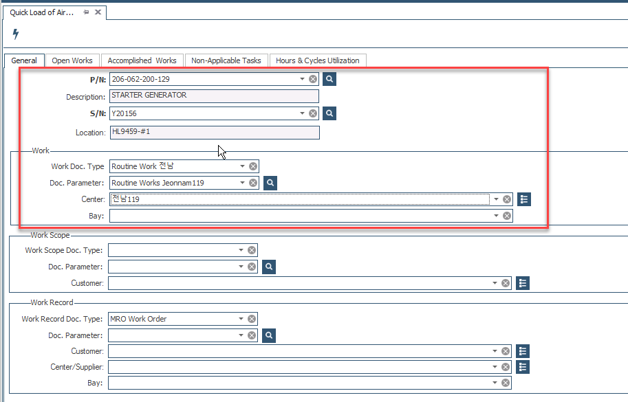 1. STEP1: 부품 PN & SN 선택 → Work Doc Type 선택(항공대 )