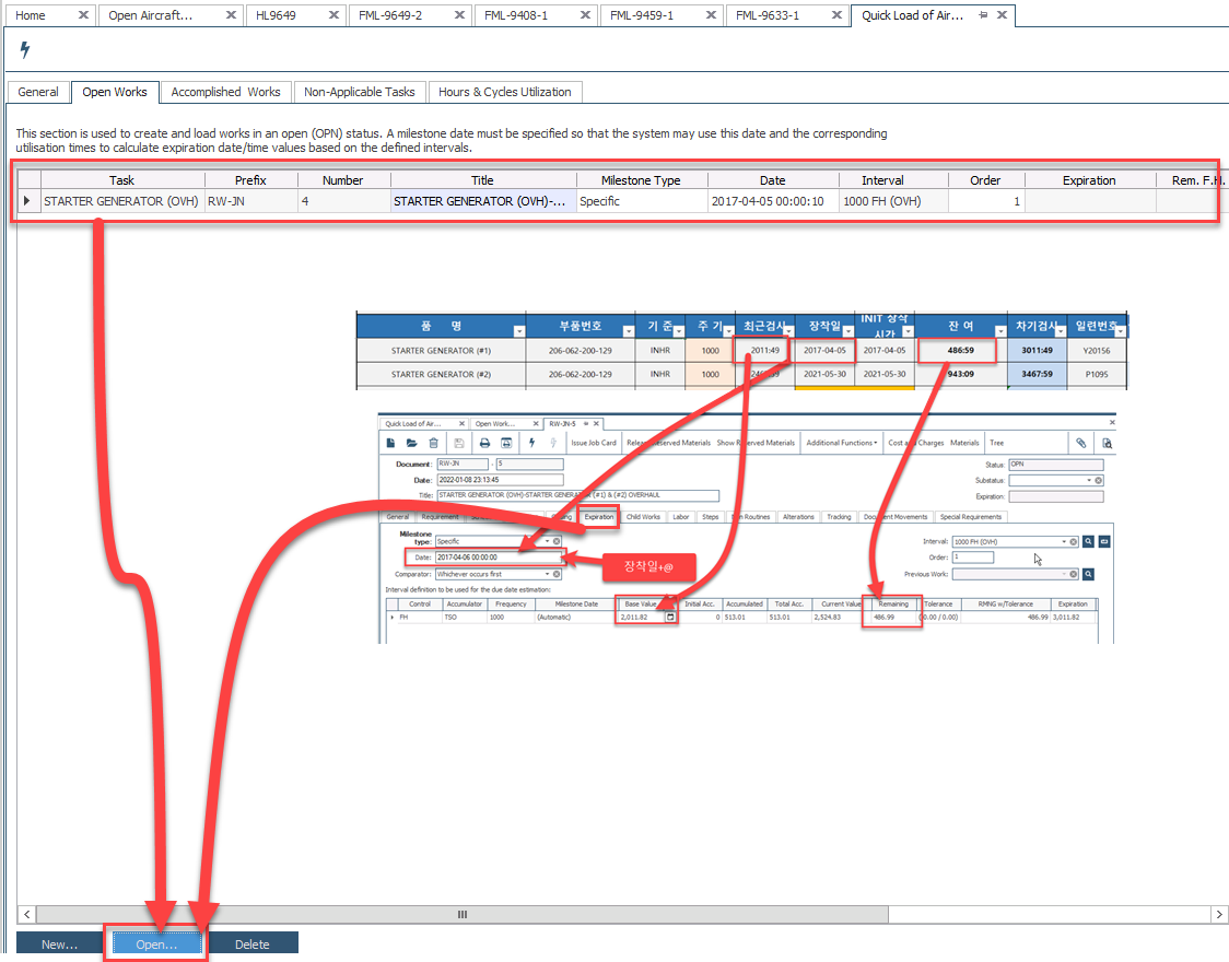 *아래 Example 은 STARTER GENERATOR 1000FH Overhaul Task 대상